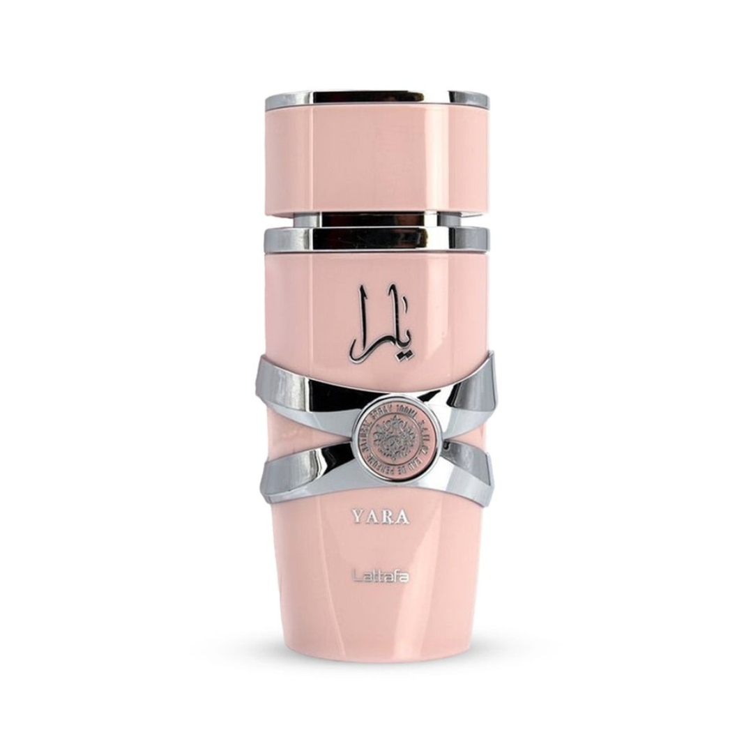 Yara Pink opens with fresh heliotrope, orchid, and tangerine, flowing into a tropical gourmand heart. The fragrance settles into a warm and sensual base of vanilla, sandalwood, and musk, leaving a memorable and inviting trail.